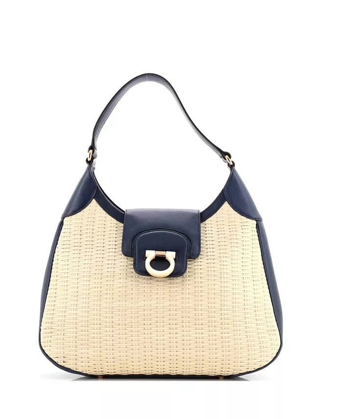Сумка-хобо Gancini Flip Lock из плетеной кожи Pre-Owned Salvatore Ferragamo, коричневый/бежевый