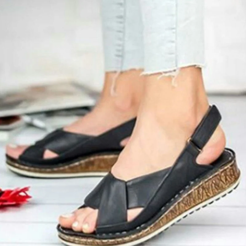 Сандалии женские на танкетке, удобные Босоножки с открытым носком, без застежки, плоская подошва, FS99, лето