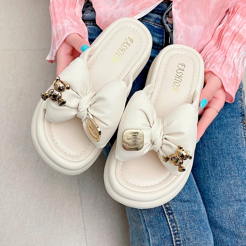 Сандалии женские на толстой подошве, босоножки с бантиком, модные тапочки, лето 2023