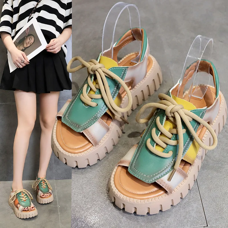 Сандалии женские на толстой подошве, пляжные туфли-клоги, высокий каблук, удобная обувь в стиле ретро, бежевые, гладиаторы, лето 2023
