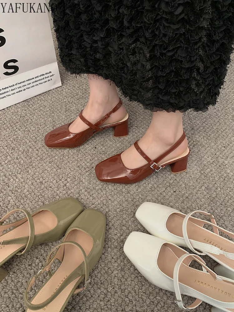 Сандалии женские на толстом каблуке, босоножки с квадратным носком, модная обувь в римском стиле, Ретро стиль, высокий каблук с ремешком на пятке, лето