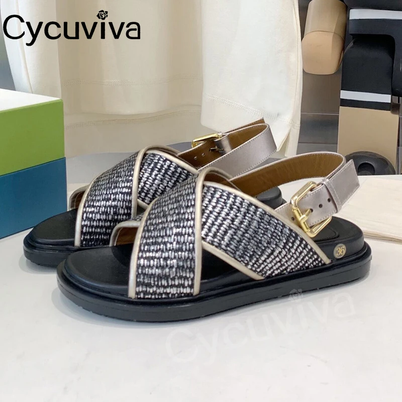 Сандалии женские с плетением из травы, Дизайнерские повседневные пляжные туфли на плоской платформе, Роскошные туфли, лето
