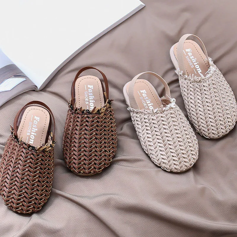 Сандалии из ротанга для девочек, модные босоножки на плоской подошве, повседневная обувь для дома, летние
