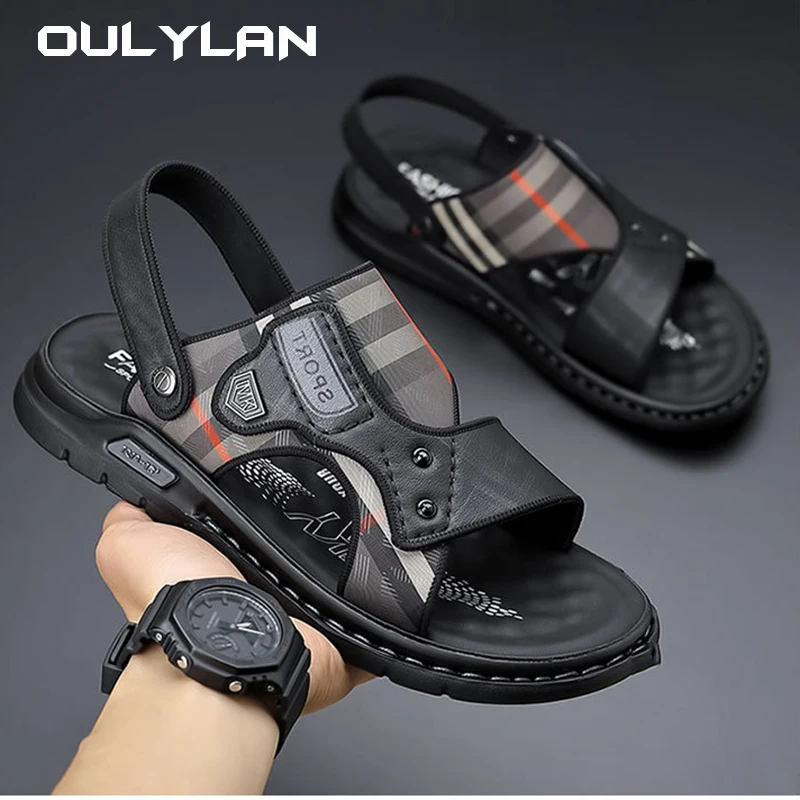 Сандалии мужские для вождения, кожаные Нескользящие, мягкая подошва, модная пляжная обувь, летняя уличная одежда, 2024