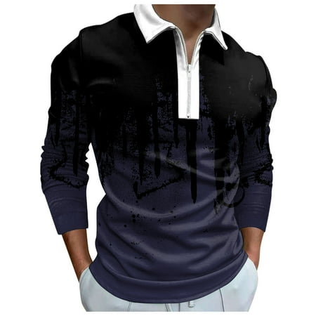 WANYNG Men Fashion Loose Lapel Zipper 3D Digital Printing Long Sleeve Top T Shirt Shirt Top Mens Ling Sleeve Tops Undershirt Scrubs Men