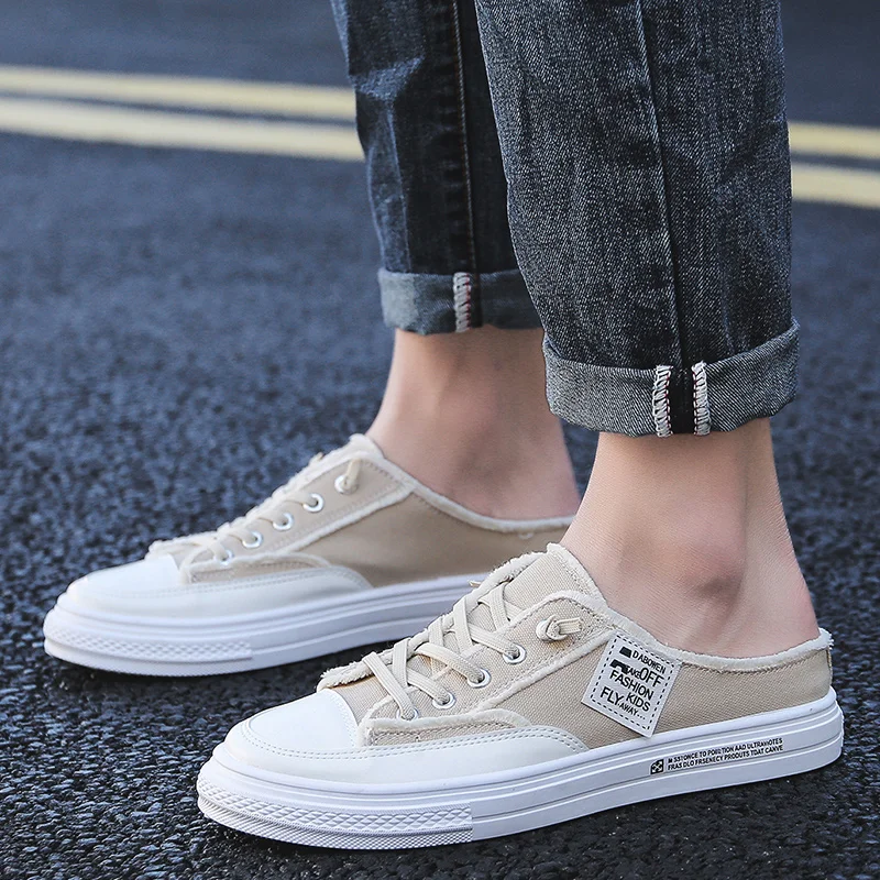 Сандалии мужские пляжные без застежки, дышащие холщовые кроссовки, клоги, летняя обувь, 2019