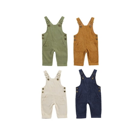 Infants Baby Boys Overalls Suspender Bib Pants Autumn Solid Color Sleeveless Casual Straps Trousers Corduroy Rompers with Pockets