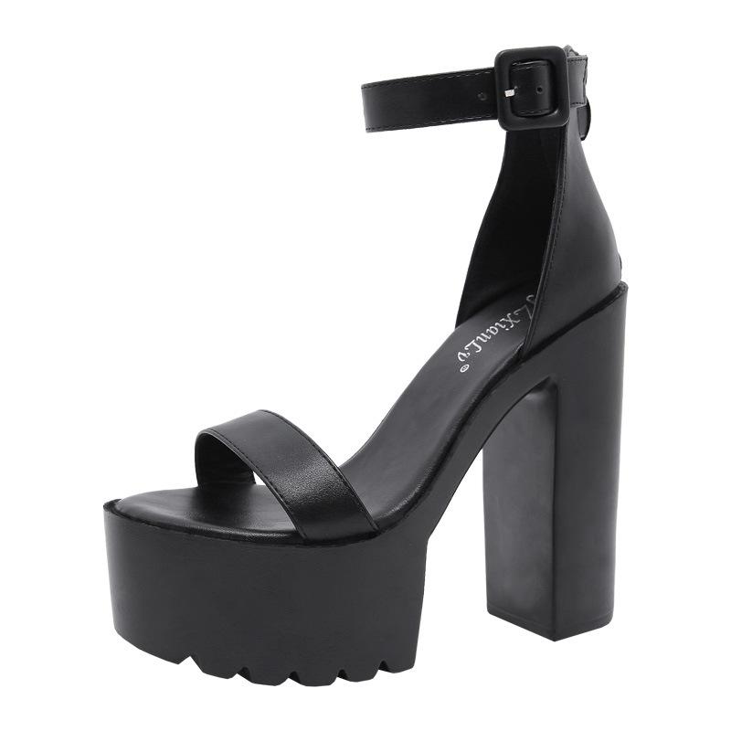 Сандалии на толстом каблуке с открытым носком, пряжка на щиколотке, платформа, блочный каблук 14 см, летние черные белые панк-туфли, женские сандалии Mujer 42