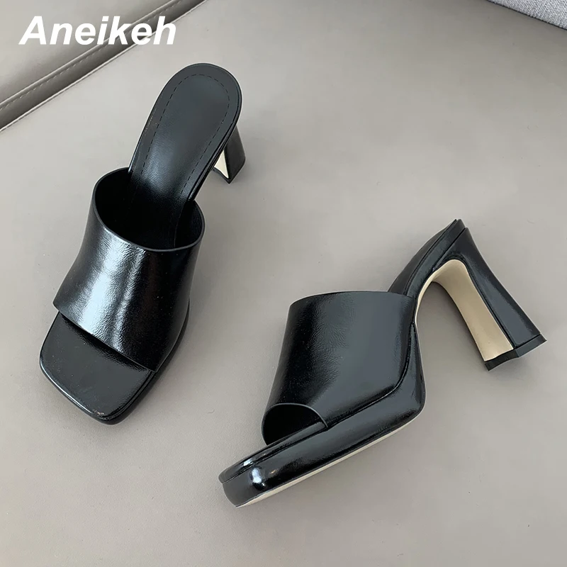 Сандалии Aneikeh 2022 в римском стиле с квадратным открытым носком, модные сандалии из искусственной кожи с цветочным украшением, женские мюли на...
