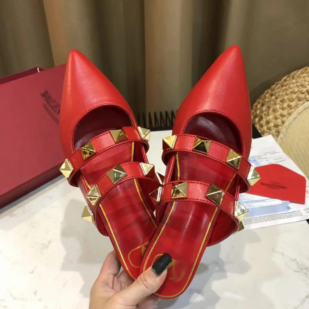 Сандалии Baotou с заклепками, босоножки на плоской подошве, заостренный носок, полуторцевые, лето 2021