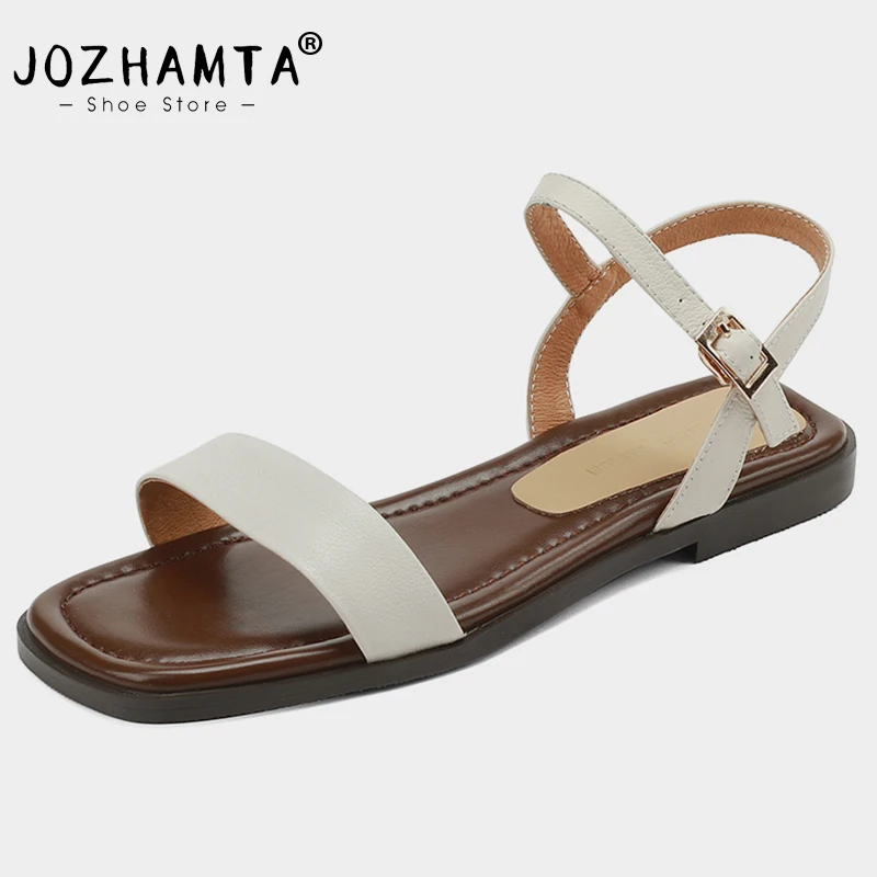 Сандалии JOZHAMTA женские из натуральной кожи, плоская подошва, низкий каблук, ремешок с пряжкой, летняя повседневная обувь, размеры 32-43, 2023