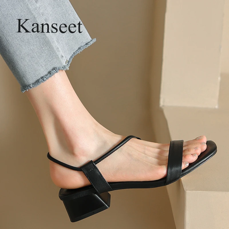 Сандалии Kanseet женские с открытым носком, натуральная кожа, босоножки ручной работы, повседневные туфли на среднем каблуке, выразительная об...