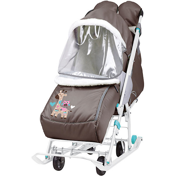 Санки-коляска Nika "Наши детки", шоколадные с жирафом, Коричневый, Санки-коляска Nika "Наши детки", шоколадные с жирафом