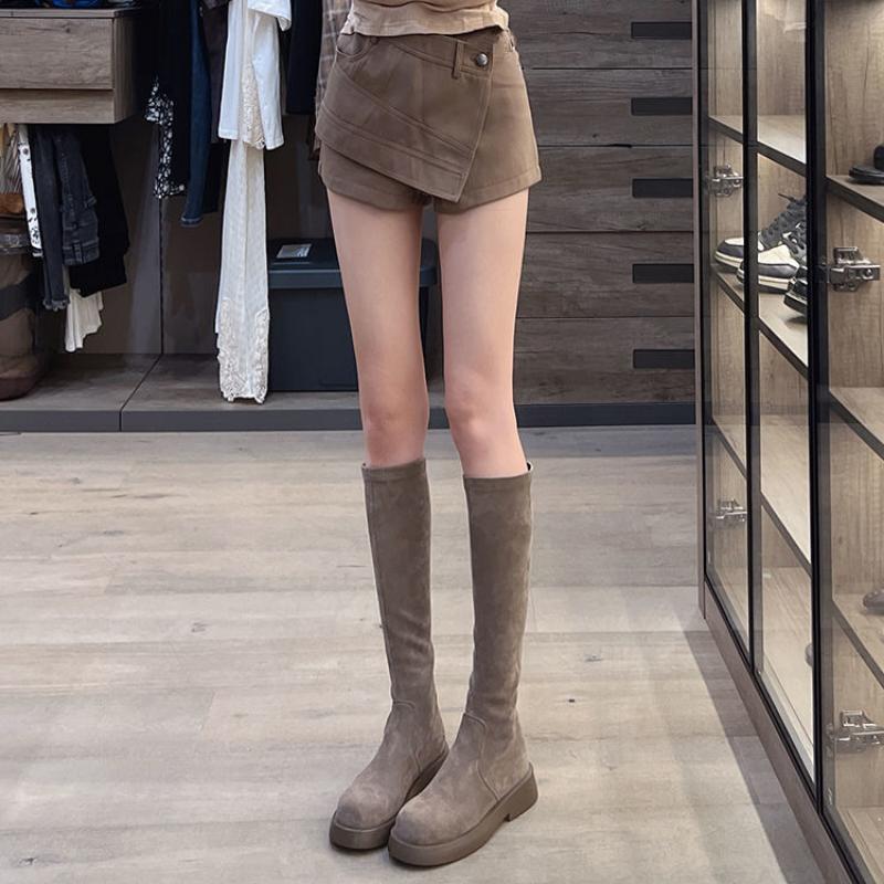 Сапоги до колена, женские, зима 2024 года, ботинки на массивной платформе, новинка, женские, длинные, для женщин, осень, на низком каблуке, эластичные 35