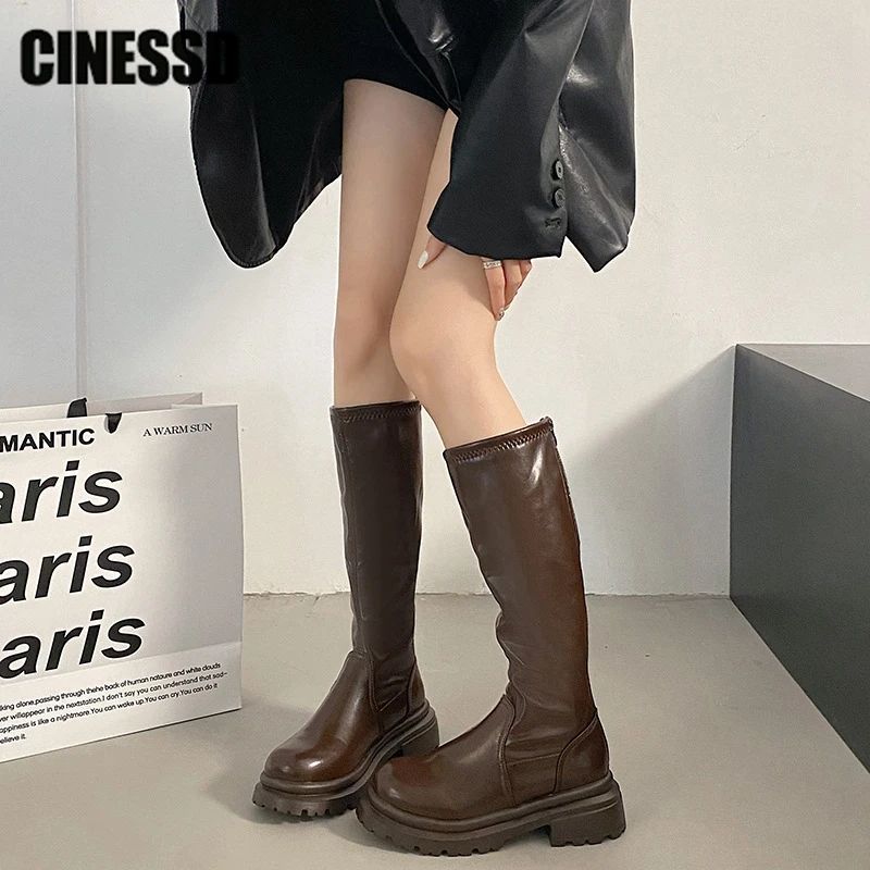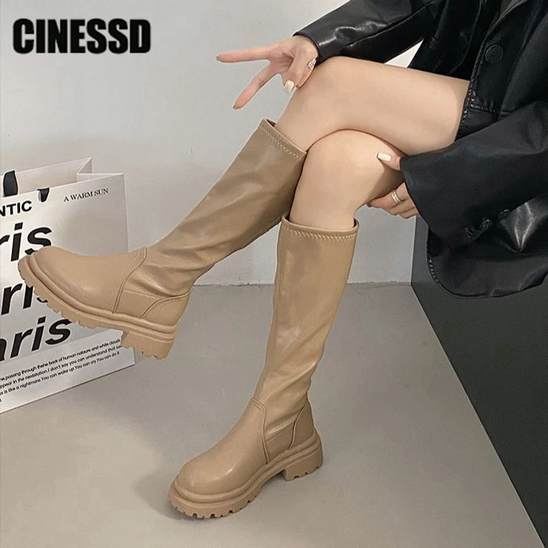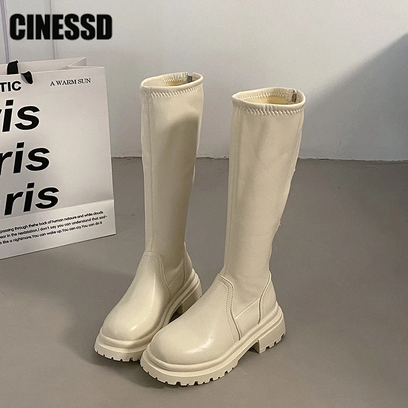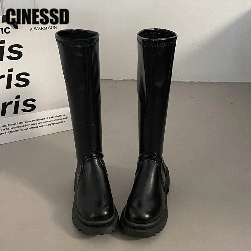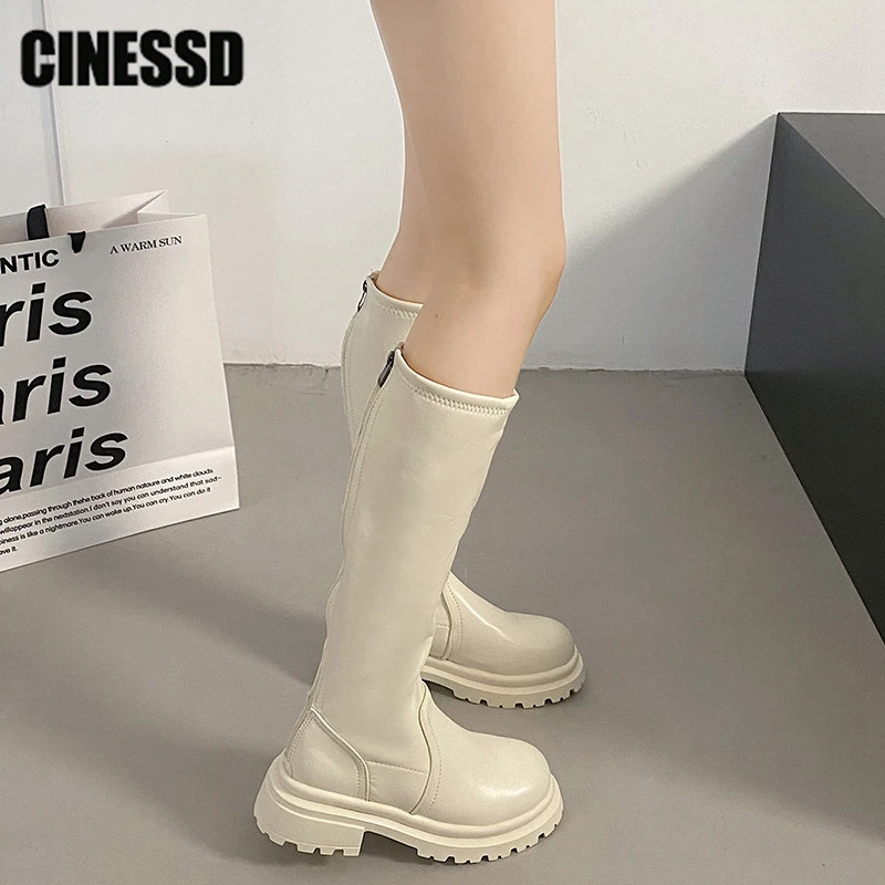 Сапоги женские до бедра, винтажные, на молнии сзади, высокие, толстая подошва, каблук, в стиле панк