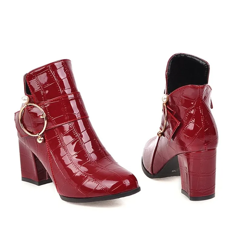 Сапоги женские зимние на толстом каблуке, с круглым носком, на молнии, с жемчугом