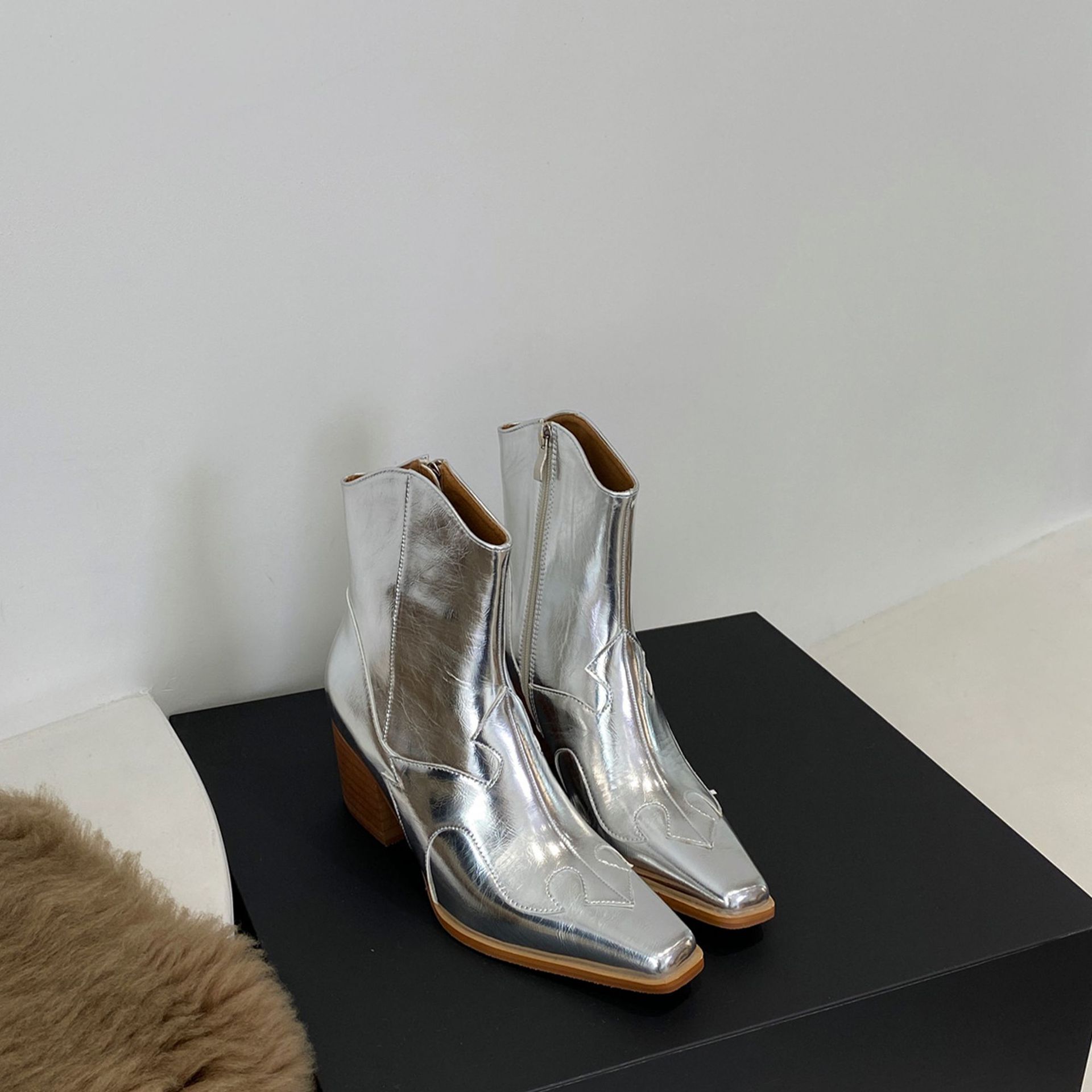 Сапоги ковбойские в стиле вестерн для женщин 2024 года, высокие сапоги до колена, роскошные длинные серебристые ретро-блестящие новые женские сапоги 40
