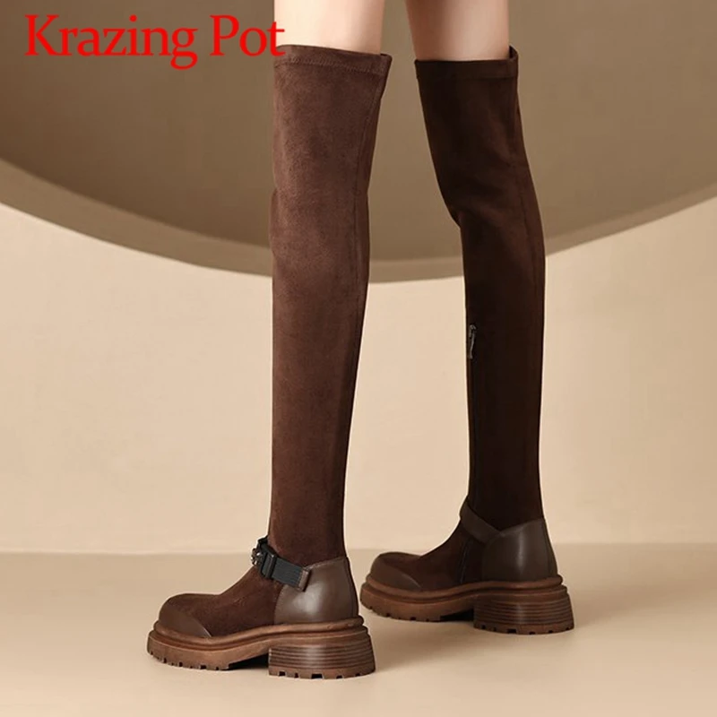 Сапоги конные из воловьей кожи на толстом высоком каблуке с пряжкой и молнией
