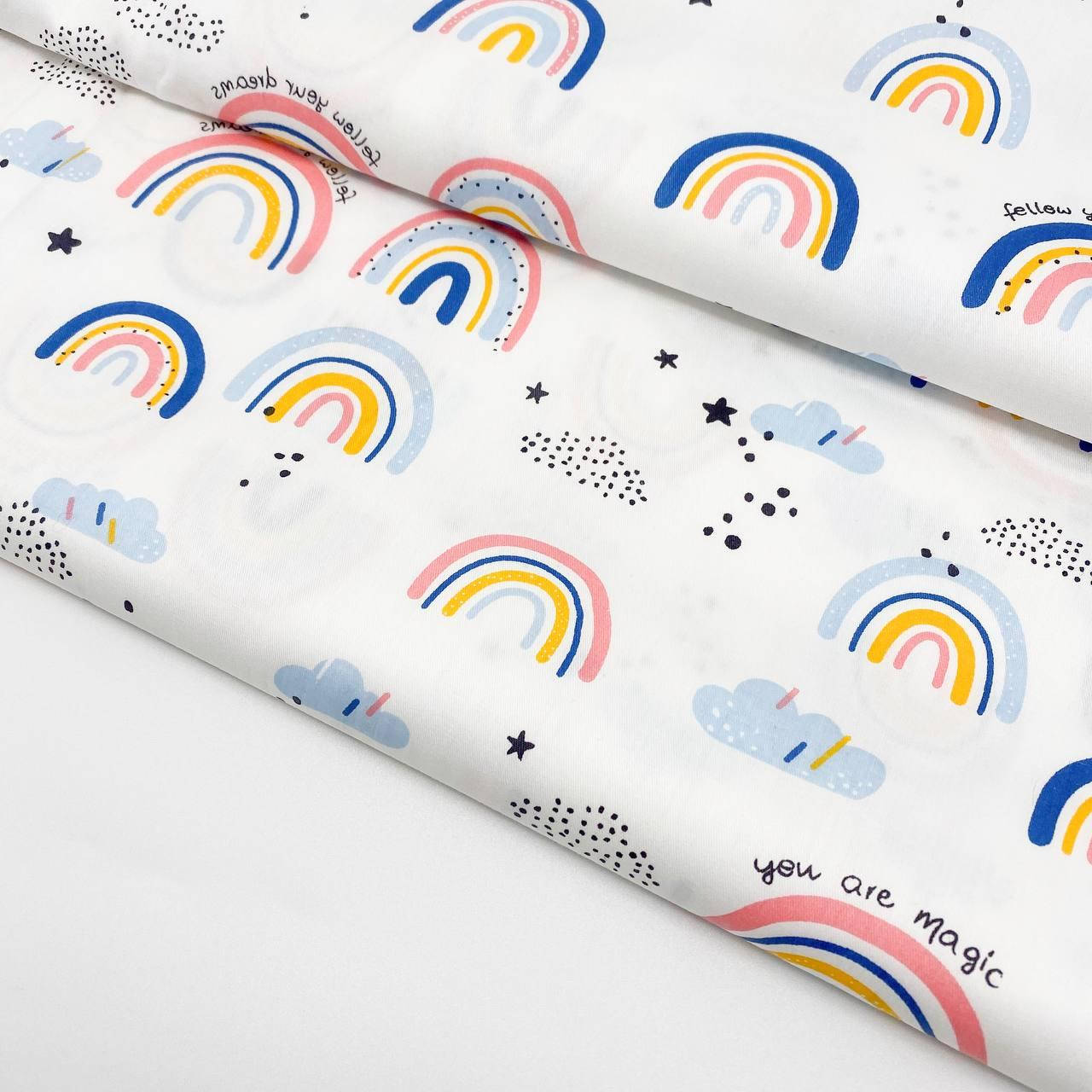 Сатин "Радуга розово-желто-голубая" 160см