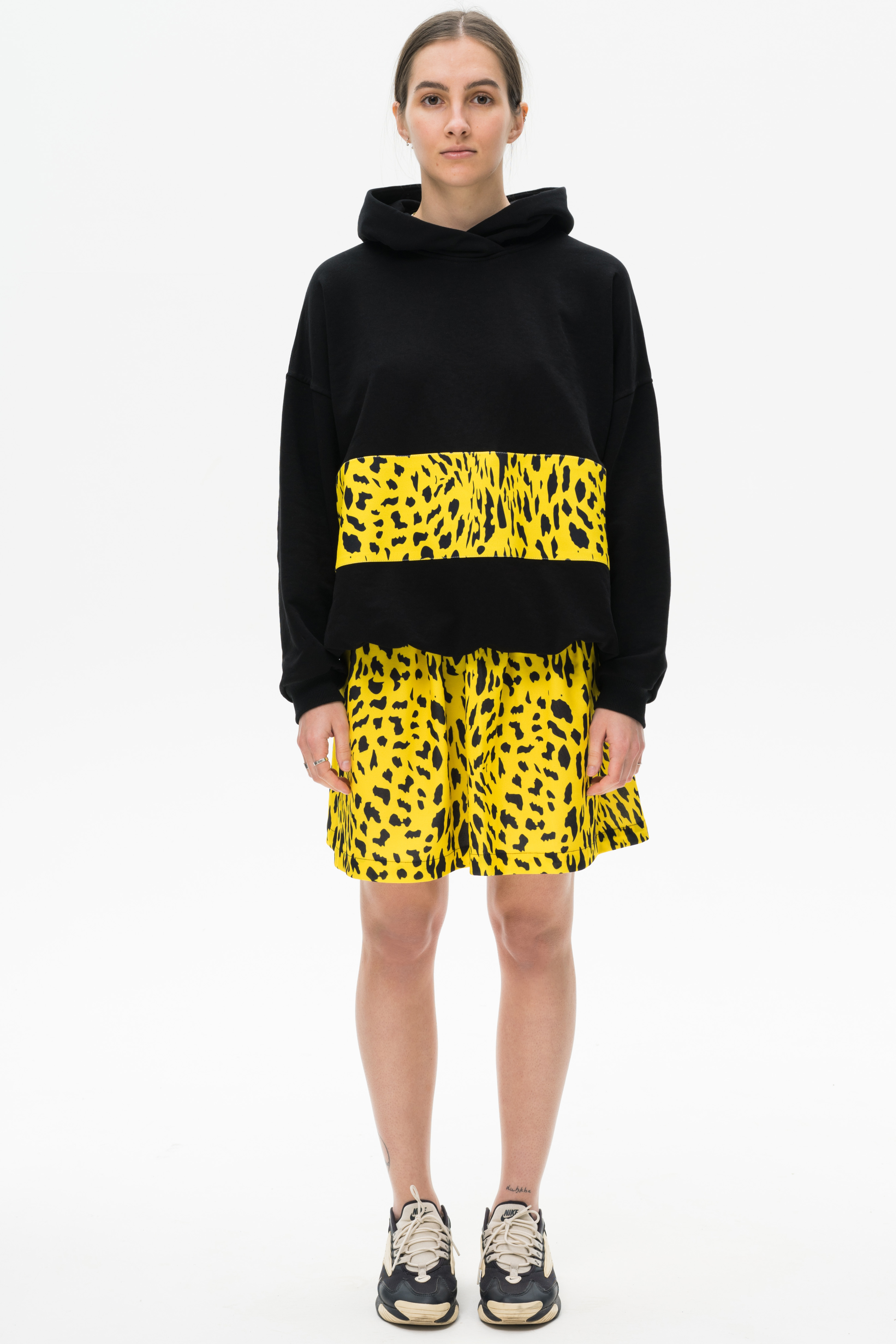 [html]Сафари костюм с леопардовой юбкой. Цвет желтый с черным. Глубокий капюшон. Худи в низу на затяжках. Резинка на рукавах из трикотажа в рубчик. Пояс в юбке на мягкой резинке. Размерная сетка Худи: XS - Обхват груди - 132 см, Длина - 68 см S - Обхват груди - 140 см, Длина - 72 см M - Обхват груди - 144 см, Длина - 82 см L - Обхват груди - 150 см, Длина - 86 см Юбка: One Size Параметры модели на фото Рост - 168 см Обхват груди - 82 см Обхват талии - 68 см Обхват бедер - 89 см Возможна посадка по вашим параметрам. Цена посадки входит в стоимость костюма. Юбка Уход Машинная стирка при температуре до 40° Ткань не скатывается и не кашлатится. При правильном уходе будет служить годами, сохраняя свой первозданный вид.[/html]