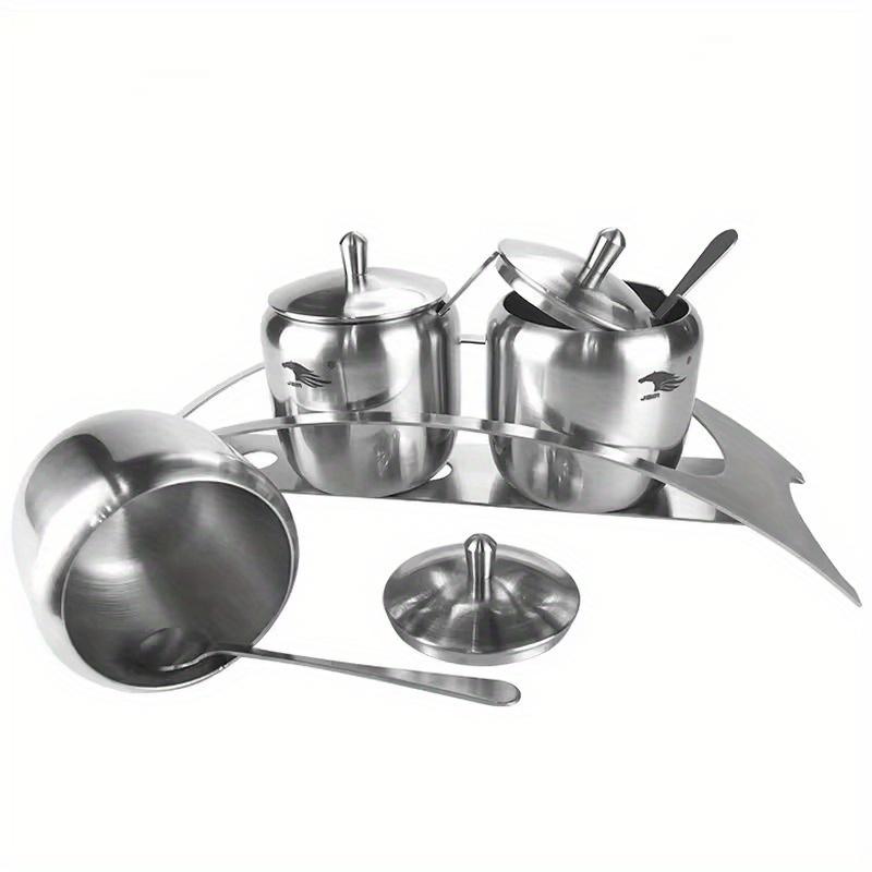 Сахарница из нержавеющей стали 304 с прозрачной крышкой, органайзеры для хранения сахара, 3 сервировочные ложки и нескользящее основание 3pcs/set