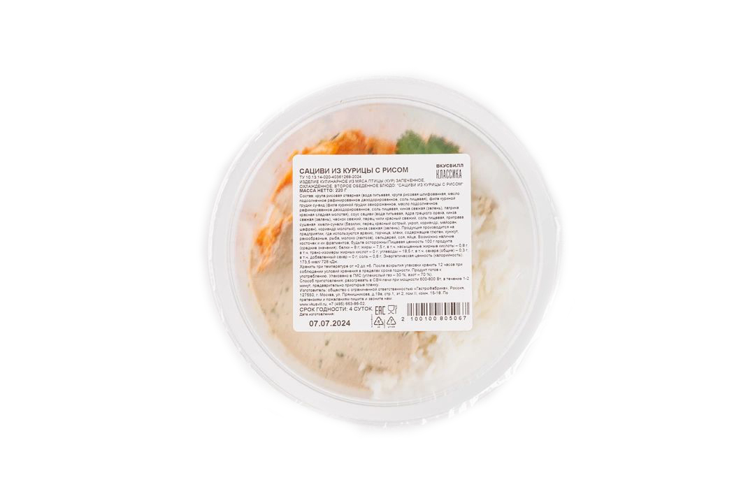Состав: | крупа рисовая отварная (вода питьевая, крупа рисовая шлифованная, масло подсолнечное рафинированное дезодорированное, соль пищевая), филе куриной грудки су-вид (филе куриной грудки замороженное, масло подсолнечное рафинированное дезодорированное, соль пищевая, кинза свежая (зелень), паприка красная сладкая молотая), соус сациви (вода питьевая, ядра грецкого ореха, кинза свежая (зелень), чеснок свежий, перец чили красный свежий, соль пищевая, приправа сушеная хмели-сунели (базилик, перец красный острый, укроп, кориандр, майоран, шафран), кориандр молотый), кинза свежая (зелень) |