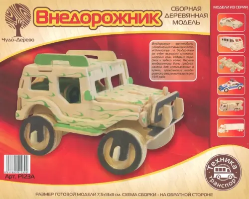 Сборная деревянная модель, малая. Внедорожник, Жёлтый