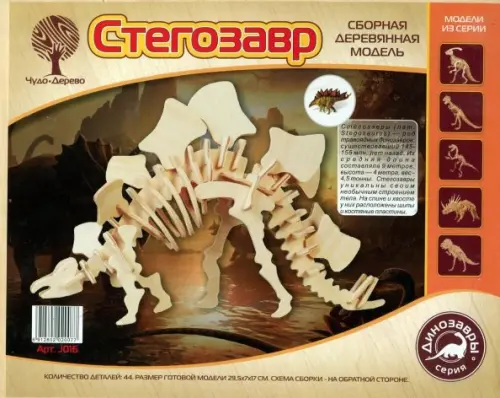 Сборная деревянная модель. Стегозавр малый, Жёлтый