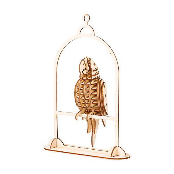 Из деревянных деталей пазла можно собрать попугая на жердочке. Жердочку со специальным крючком можно подвесить или поставить на любую горизонтальную поверхность.