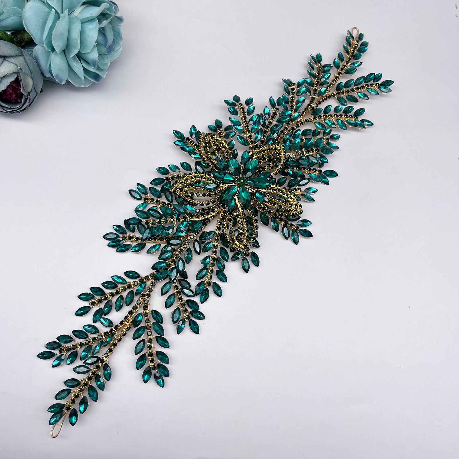 Свадебная тиара в виде листа, полная бриллиантов, тяжелая промышленность, легкая роскошная пластина, повязка на голову, повязка на голову, свадебное платье, аксессуары Dz135 зелёный