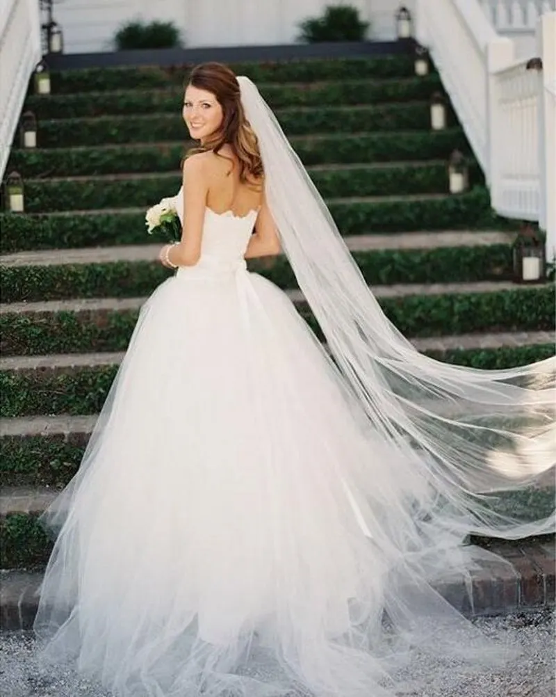 Свадебная фата невесты Однослойная пряжа с длинным хвостом и расческой для волос