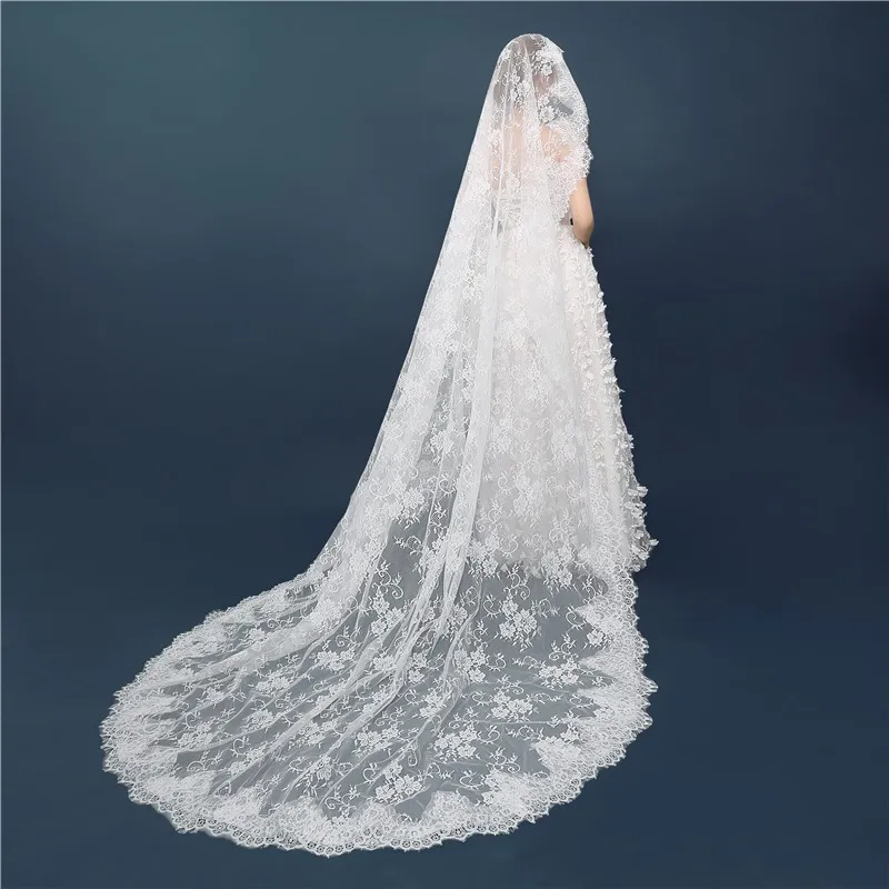 Свадебная фата цвета слоновой кости с расческой, кружевной аппликацией, аксессуары для невесты