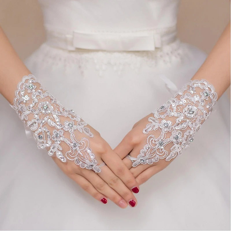 Свадебные Перчатки Элегантные короткие белые кружевные женские перчатки без пальцев Свадебные аксессуары
