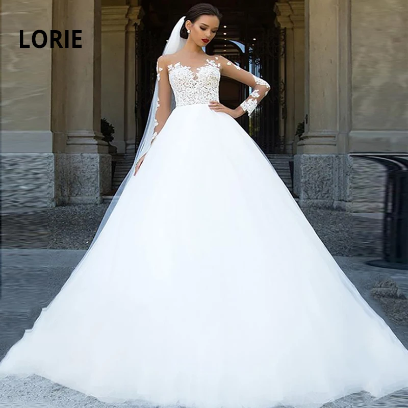 Свадебные платья LORIE с длинным рукавом, кружевные свадебные платья Allpiqued 2020, пушистое платье невесты в стиле бохо, Белое Женское платье