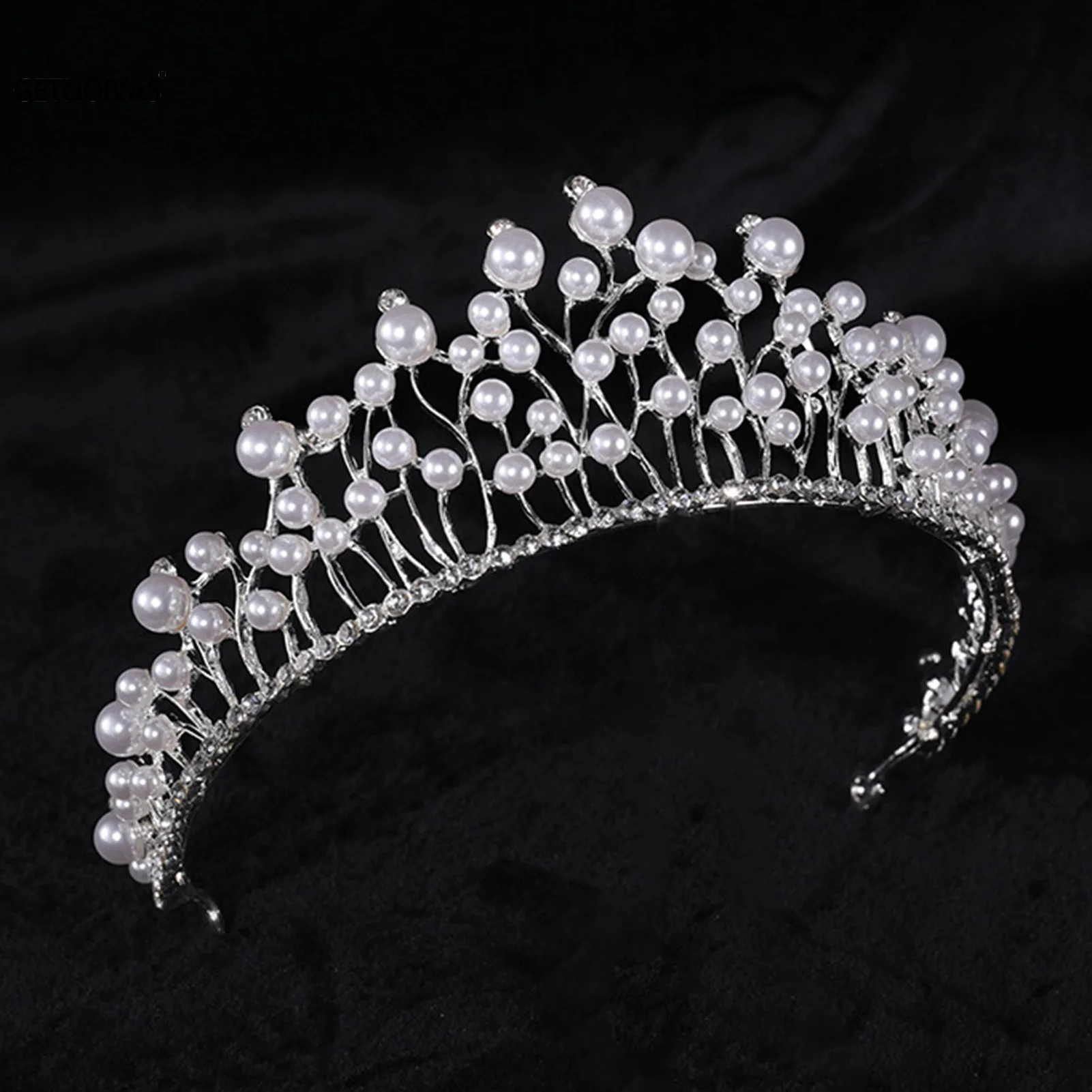 Свадебные тиары и короны, жемчужные повязки для волос, свадебные аксессуары для волос для женщин, Винтажные Украшения для волос в виде короны, головной убор