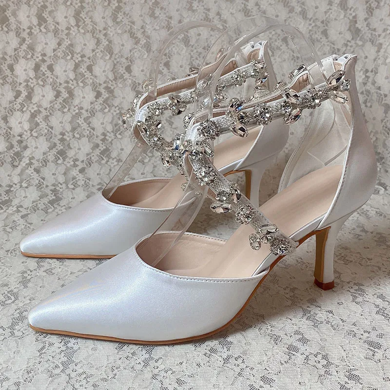 Свадебные туфли со стразами, Белая обувь невесты на среднем каблуке 8 см, Большая скидка