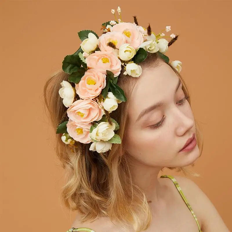 Свадебный цветок повязка на голову поддельные розы волос Венок цветочный головной убор для свадьбы пляж