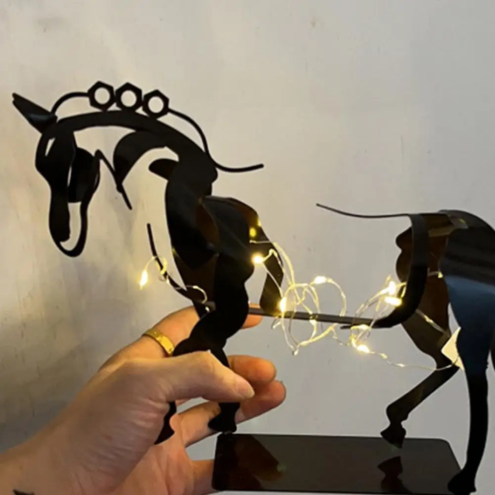 Сварная лошадь, скульптура, металлическая лошадь, скульптура для деревенского украшения дома и офиса, трехмерный полый дизайн, художественное украшение