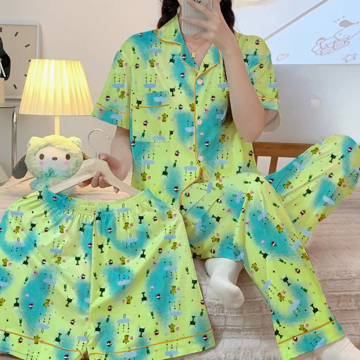 Свежая зеленая женская пижама с рисунком, милая, 3 предмета, женская пижама, молочный шелк, модная женская домашняя одежда XXL зелёный