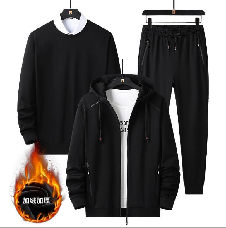 2021 Spring New Jogger Tracksuit Hoodies+hoodies+pants 3pcs Sets Men's Sportswear Sport Suit Clothing LSTT, Black