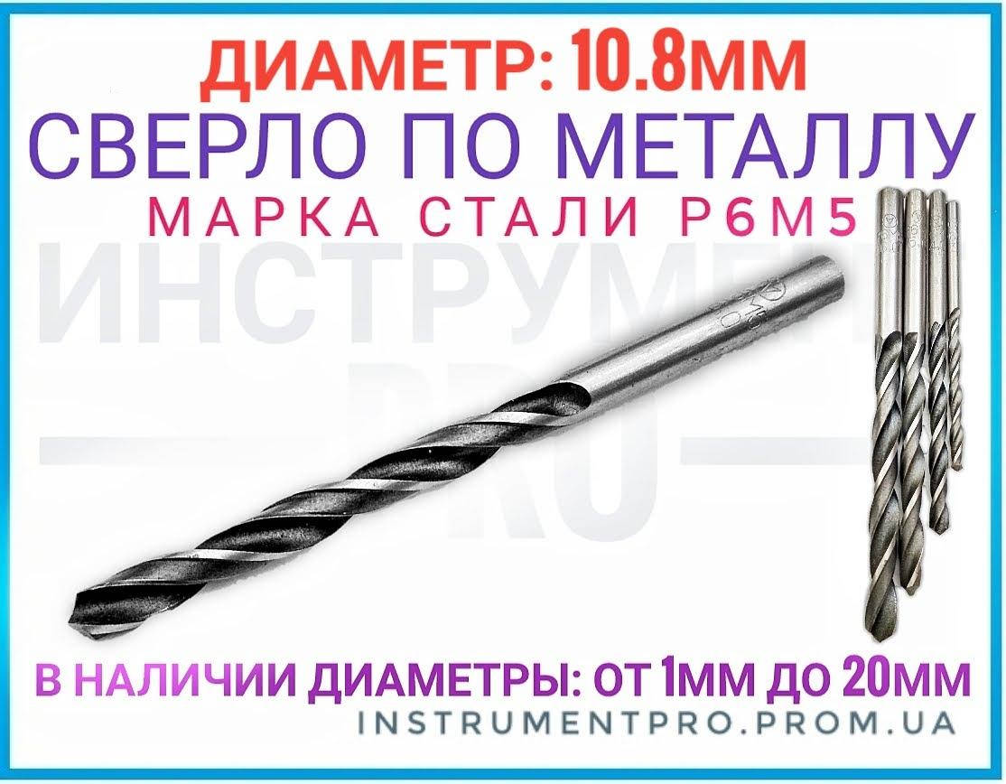 Сверло по металлу Р6М5, 10.8мм