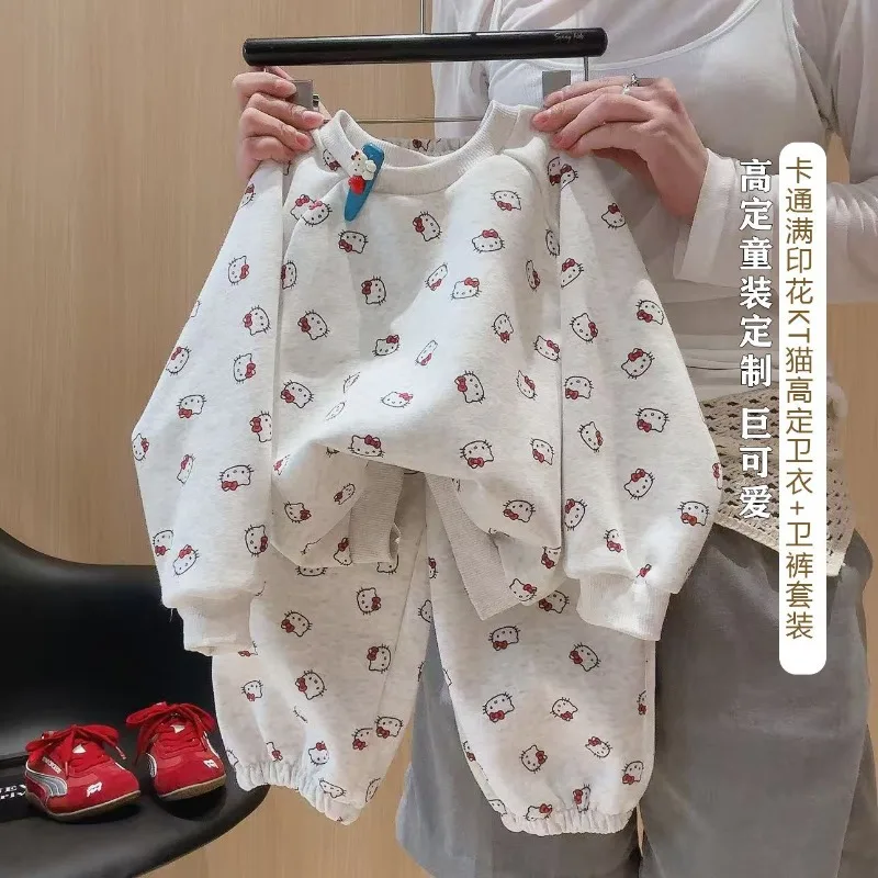 Kawaii Hello Kitty Sanrio Student Cute Cartoon Comfortable Hoodie Children Warm Sportswear Trousers Birthday Gift for Kids