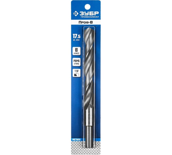 Сверло ⌀17.5мм x 191мм/130мм, P6M5, по металлу, ЗУБР ПРОФ-В, 1шт. (29621-17.5)