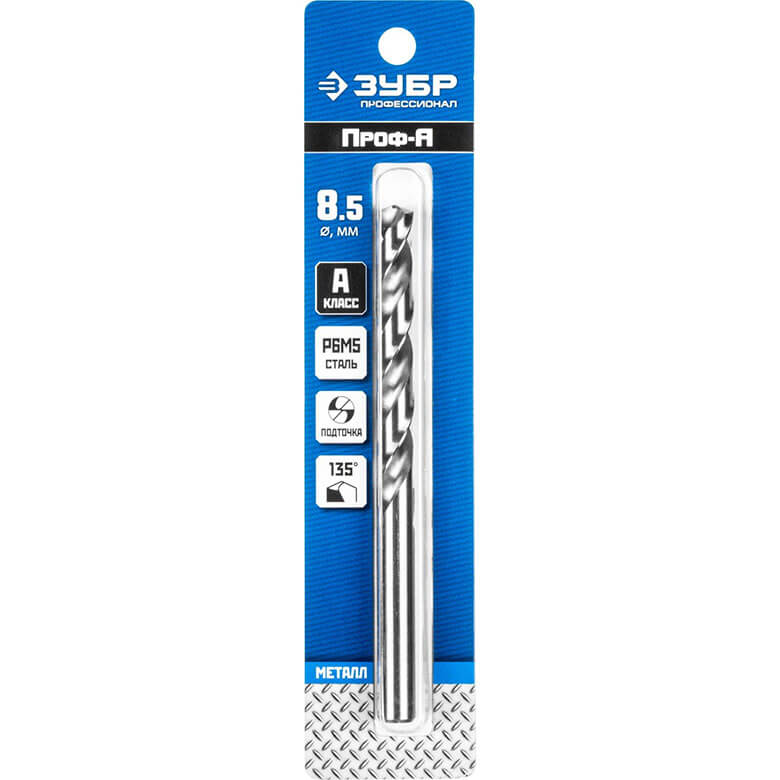 Сверло ⌀8.5 мм x 11.7 см/7.5 см, сталь Р6М5, по металлу, ЗУБР Профессионал, 1 шт. (29625-8.5)