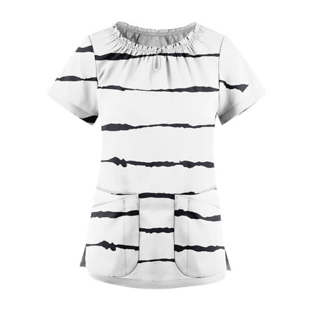 EKOUSN Scrub Top Women Lace-up V Neck Cartoon Pattern Tops Nursing Working Uniform Short Sleeve T-Shirts