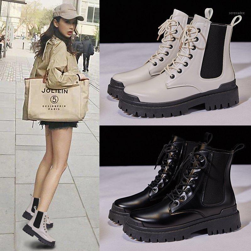 Boots Women's British Style 2020 New Autumn and Winter Thick-soled Women's Boots Increase Locomotive Mid-tube Short1, Black