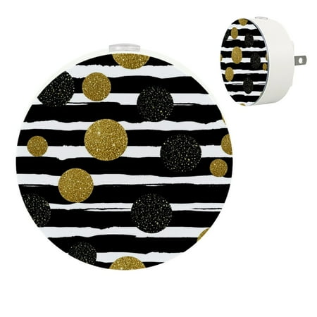 LED Night Lights Plug into Wall 2-Pack 0.5W Plug in Night Light Dusk to Dawn White Bright Nightlight for Bedroom Bathroom Hallway Kitchen Black and White Striped Golden Wave Dot Modern