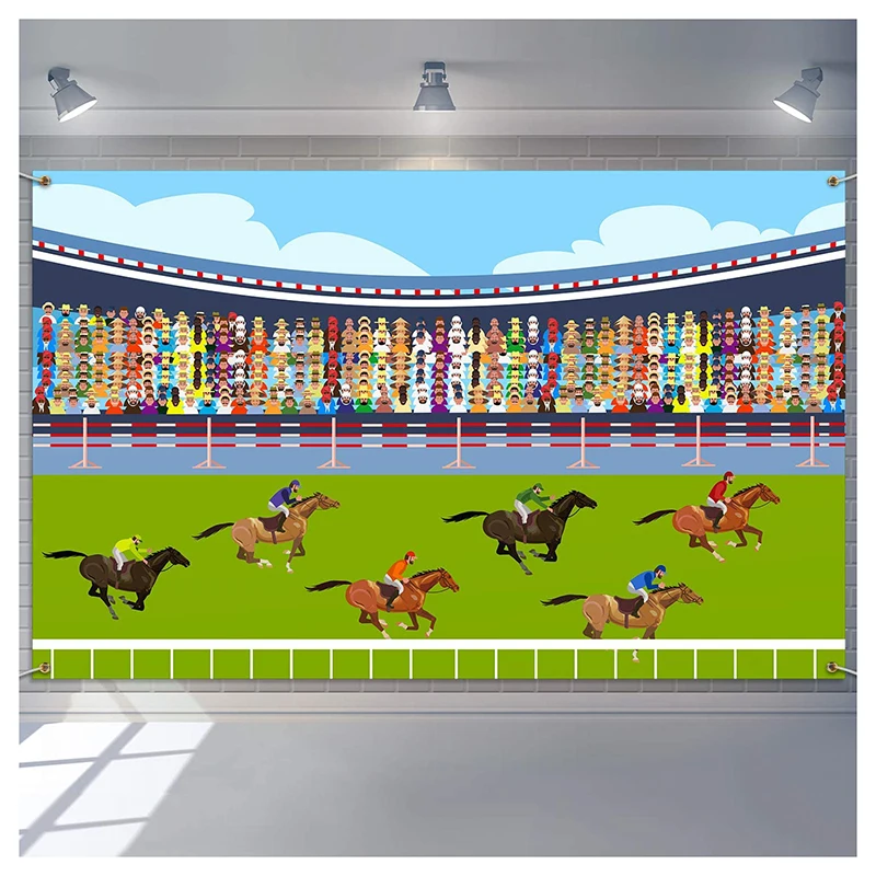 Horse Racing Kentucky Derby Party Banner Decor for Horse Racing Birthday Baby Shower PartyTurf Racetrack Deck Stadium Backdrop