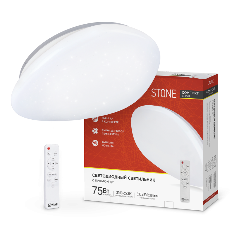 Светильник потолочный светодиодный COMFORT STONE , 75Вт, 3000-6500K, 6000лм, IP40, IN HOME (4690612035642), COMFORT STONE
