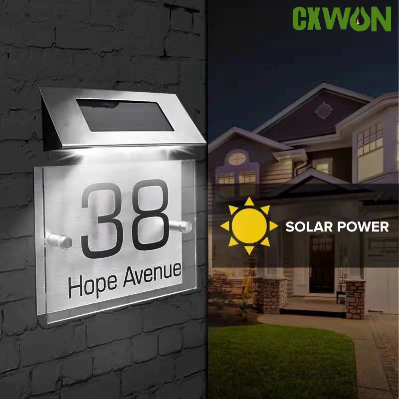 Светильник рь на солнечной батарее для двери, уличная Водонепроницаемая сверхъяркая цифровая лампа для письма, адресной индикации, предупр...